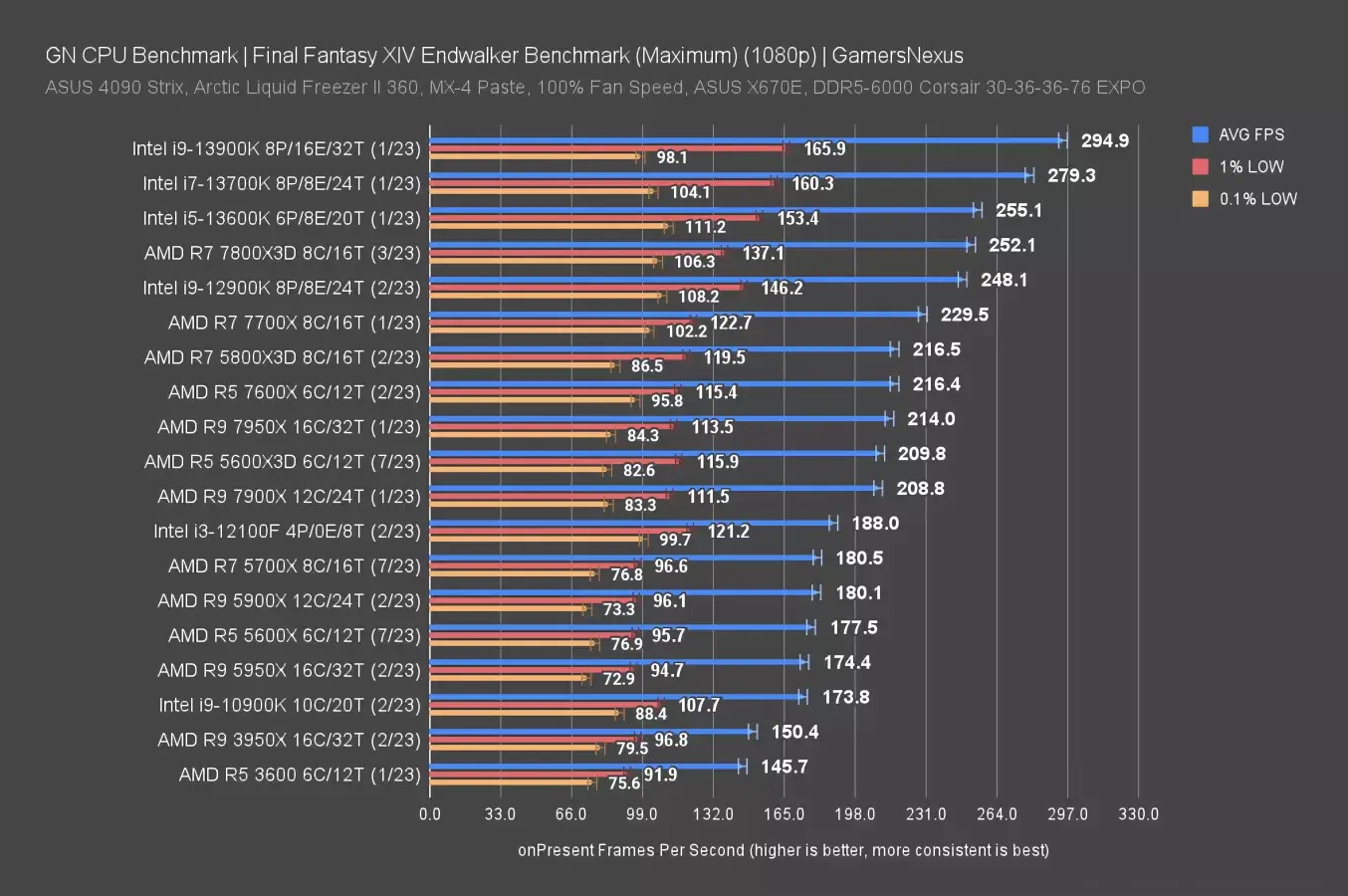 Final Fantasy 14 is up next, tested first at 1080p. This gives us a look at some of the best CPUs for FFXIV.