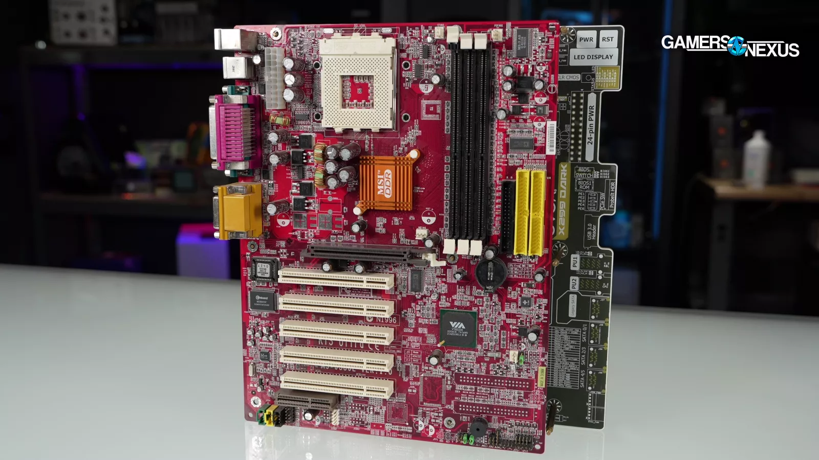 Our original plan was to build a system worthy of ZXC-64's "Snow-White" Voodoo5 6000, with the baseline requirements being a Windows 9x install and an AGP 1.0 compatible slot. After some discussion with Anthony and perusal of old motherboard roundups, we settled on an MSI KT3 Ultra motherboard, which Anand Shimpi himself awarded an Editor's Choice Award. We paired that with an Athlon XP 2600+ Thoroughbred from 2002, from the classic AMD era where "2600+" meant 2133MHz.
